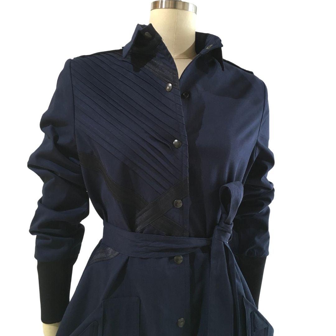 Cotton tench coat with flair pockets, satin lining, fabric belt, handmade pleat details . With snap closure in front and snaps on the pocket and shoulders so you can snap SWABY belts to it.