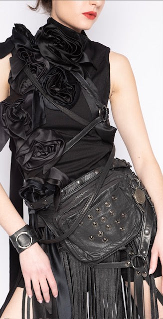 Leather Studded Hip Bag with Wrap Around Leg Harness.