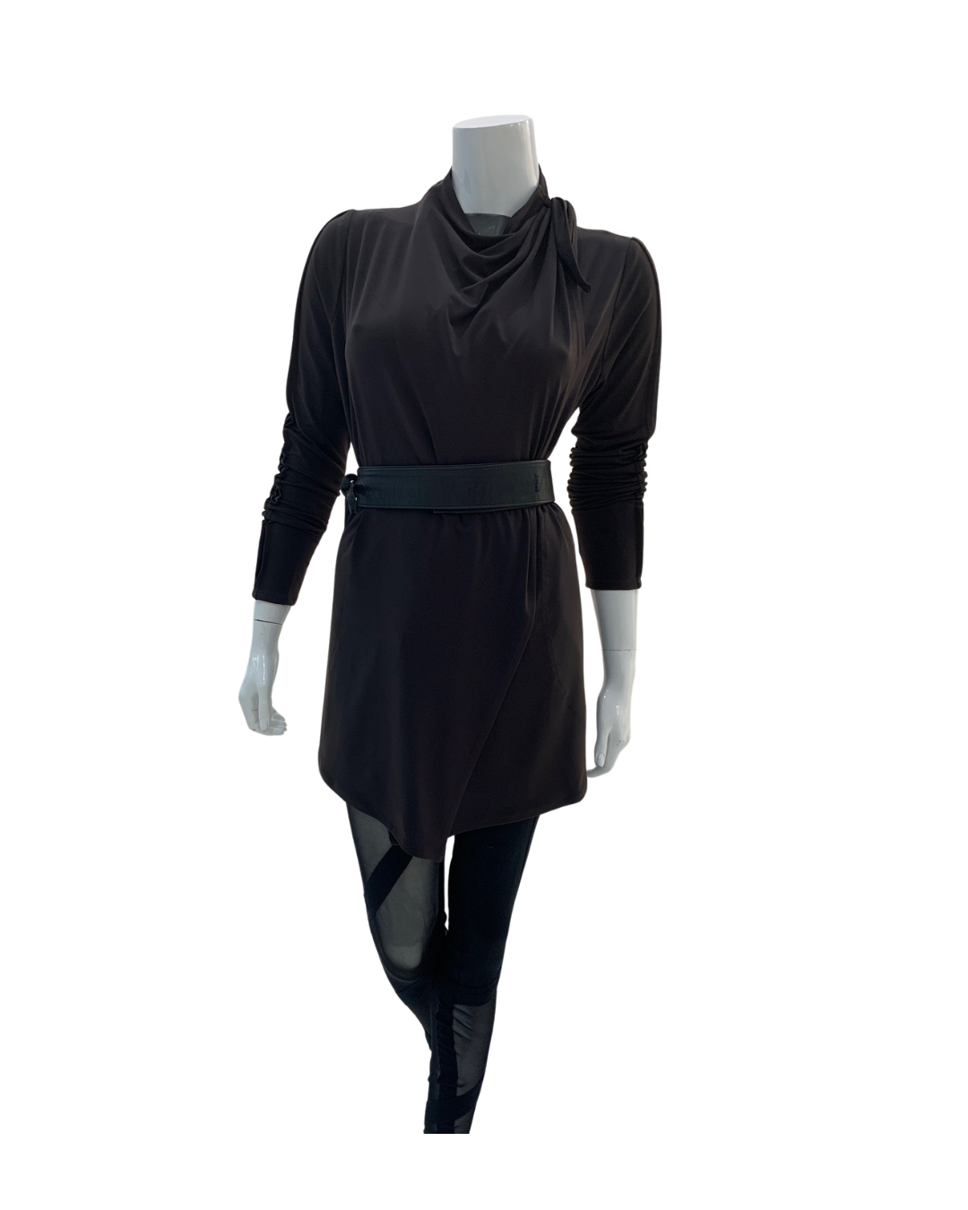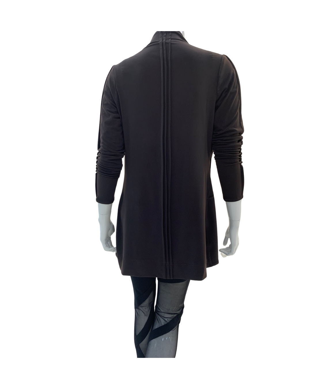 Versatile shawl-like soft jacket that can be wrapped and looped at neck , drapes beautiful. Pleat detail on Back and sleeves, wrinkle resistant. Lightweight Jersey - comfortable - packable - washable - customizable - wear day to night.