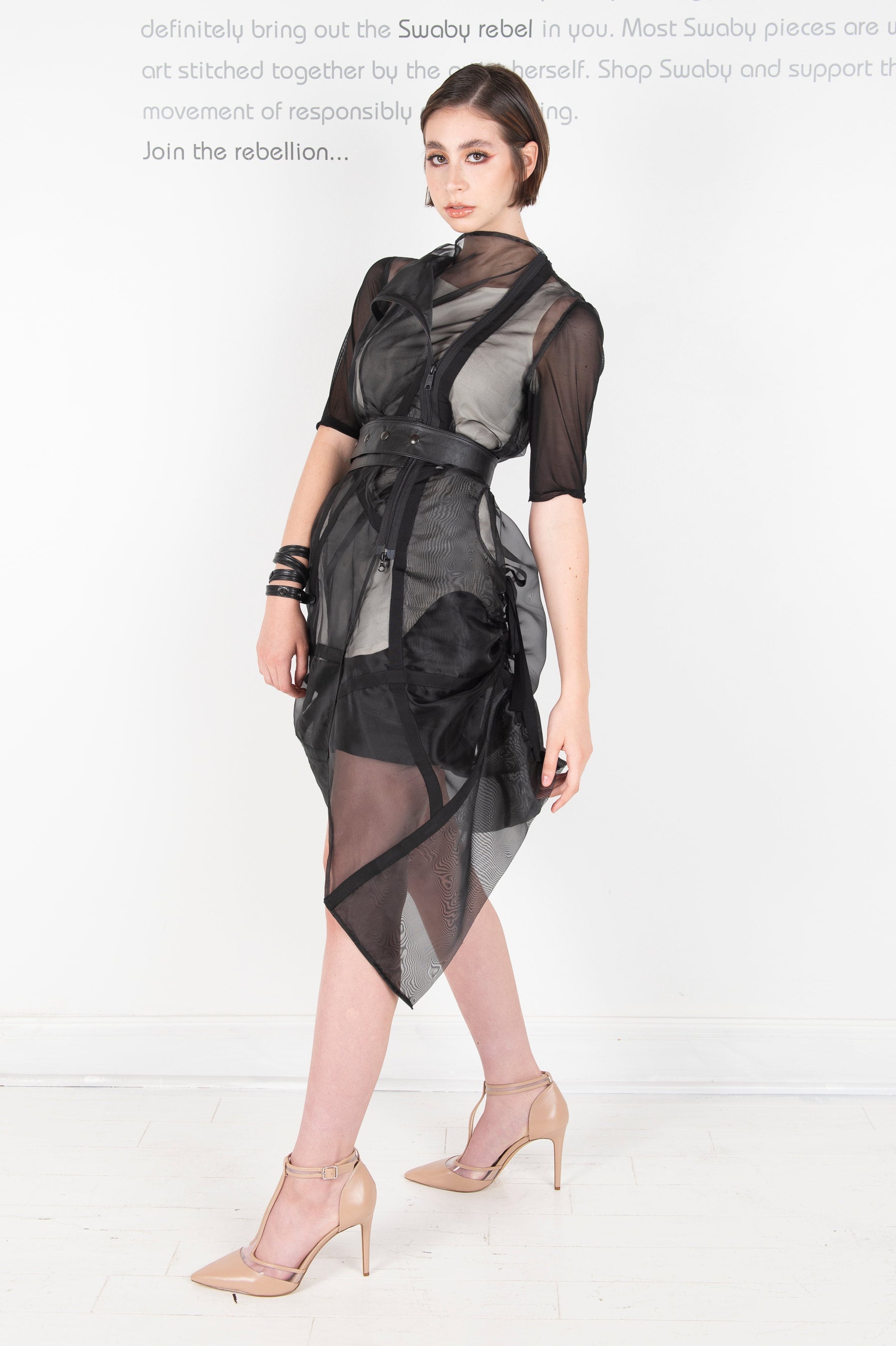 Organza jacket with a zipper closure, pockets, drawstrings at the side and gross grain ribbon detail lines.