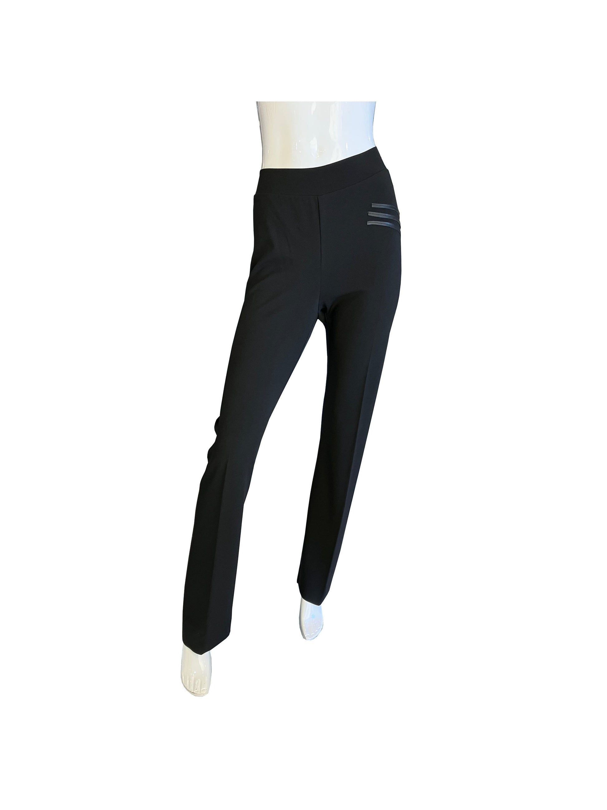 Urban rebel stretch crepe trousers with stretchy waistband and calf-skin leather trim detail.
