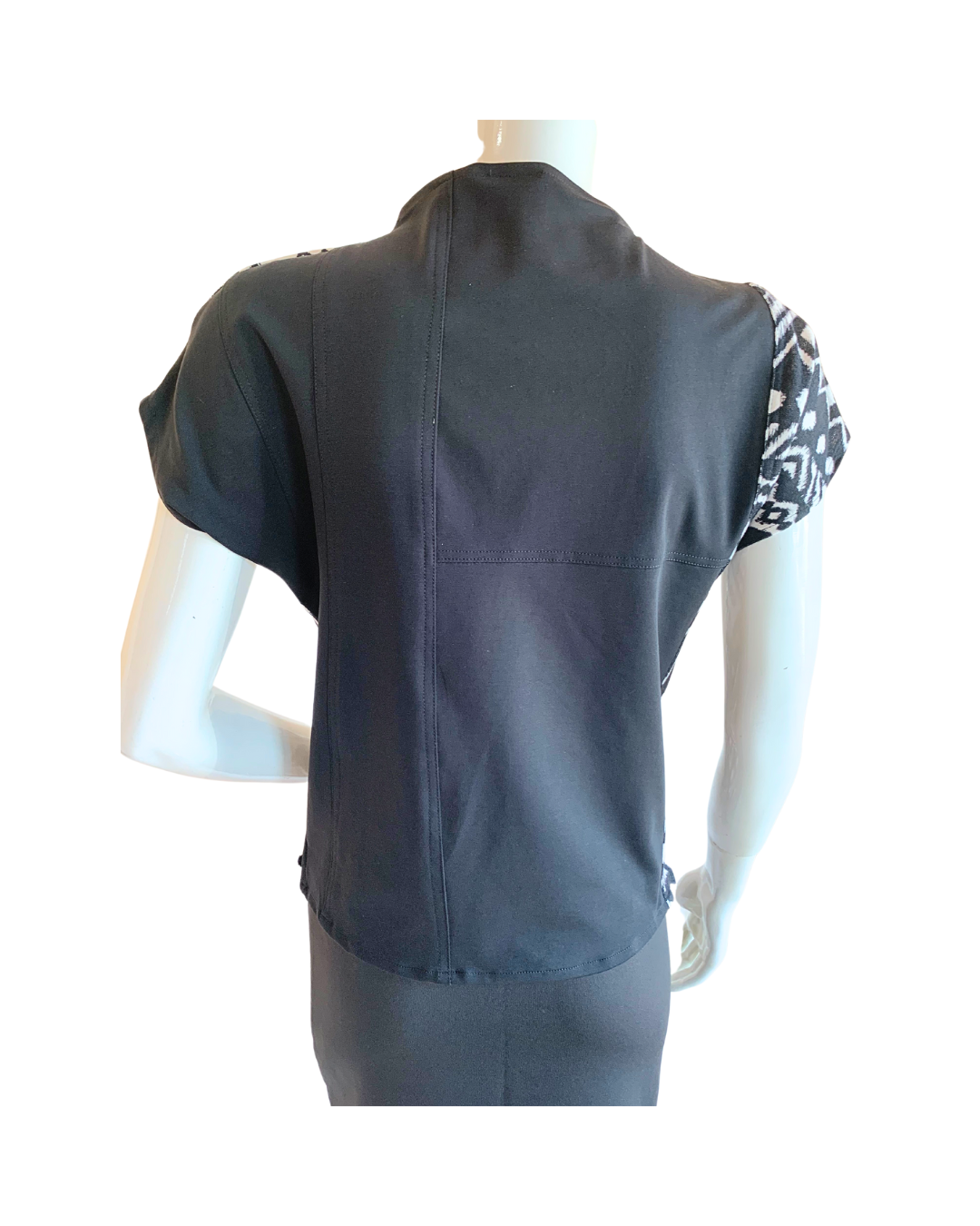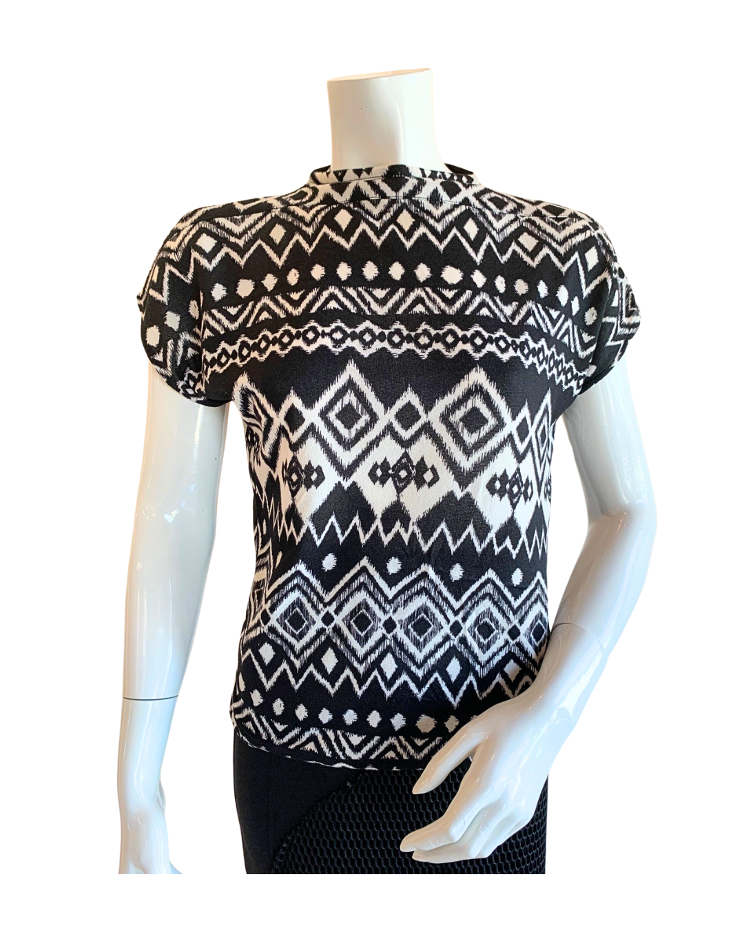 medium weight and stretchy tribal print black and white graphic tee.
