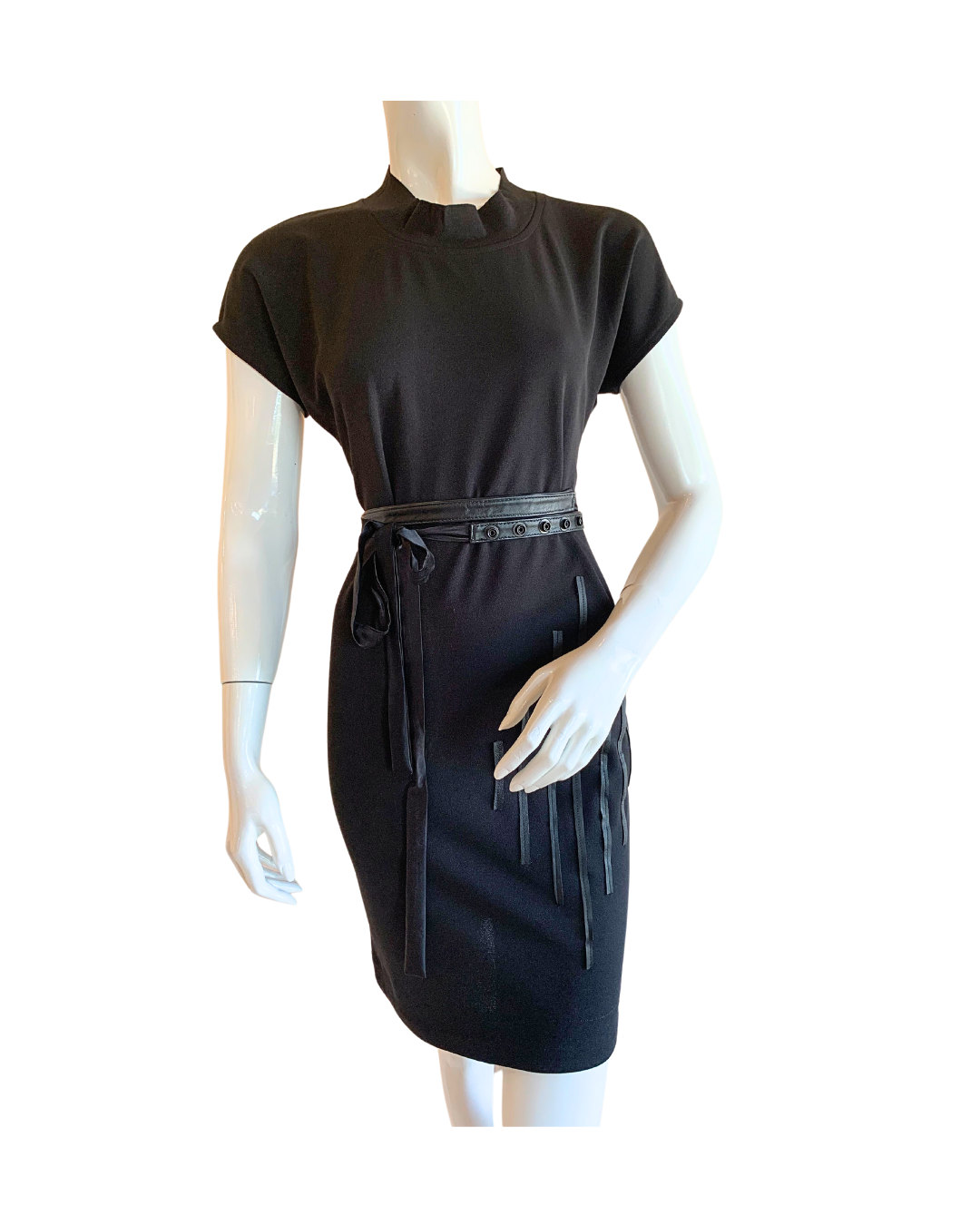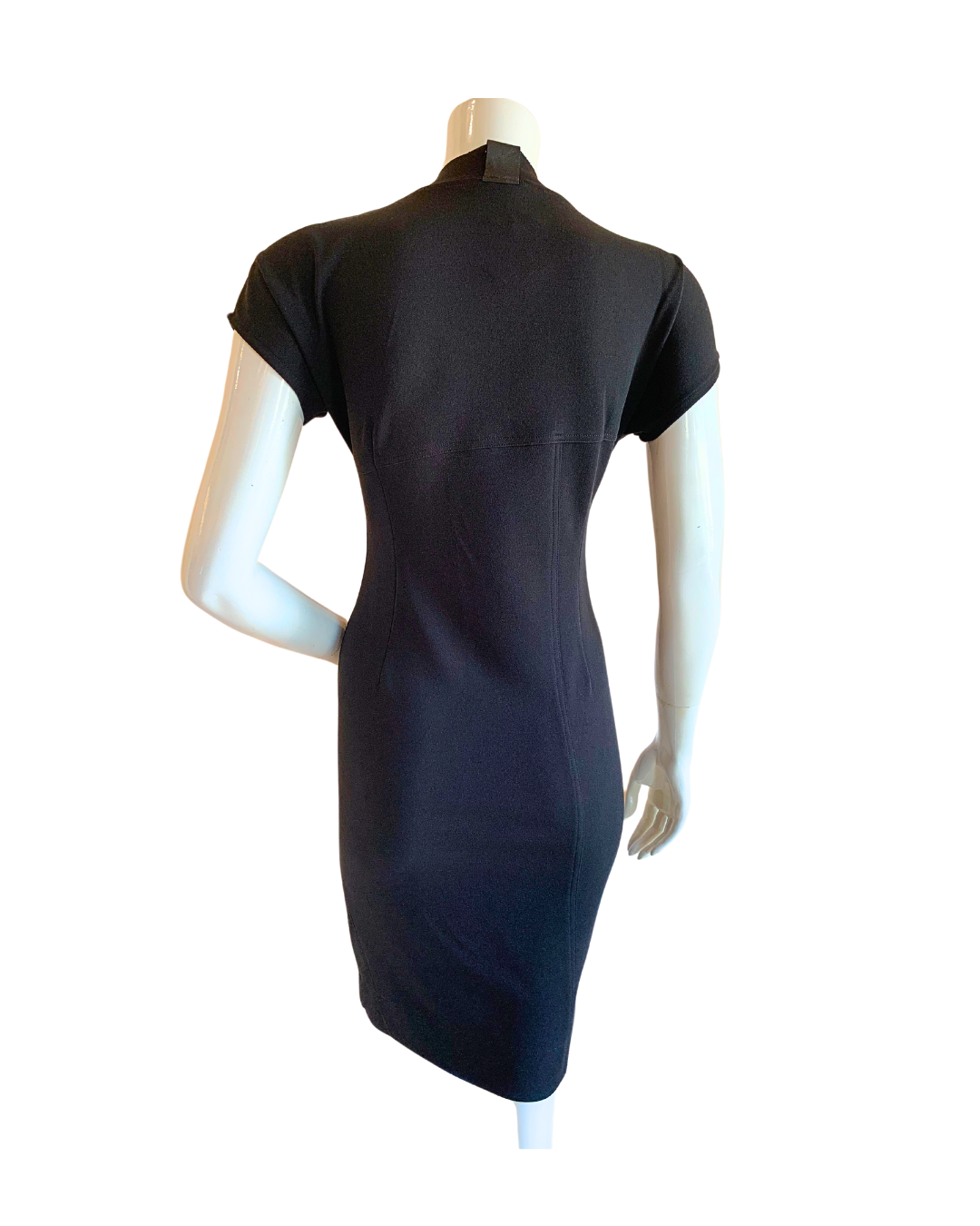 Black stretch poly crepe shift dress, Great silhouette, Fits beautiful without a belt.