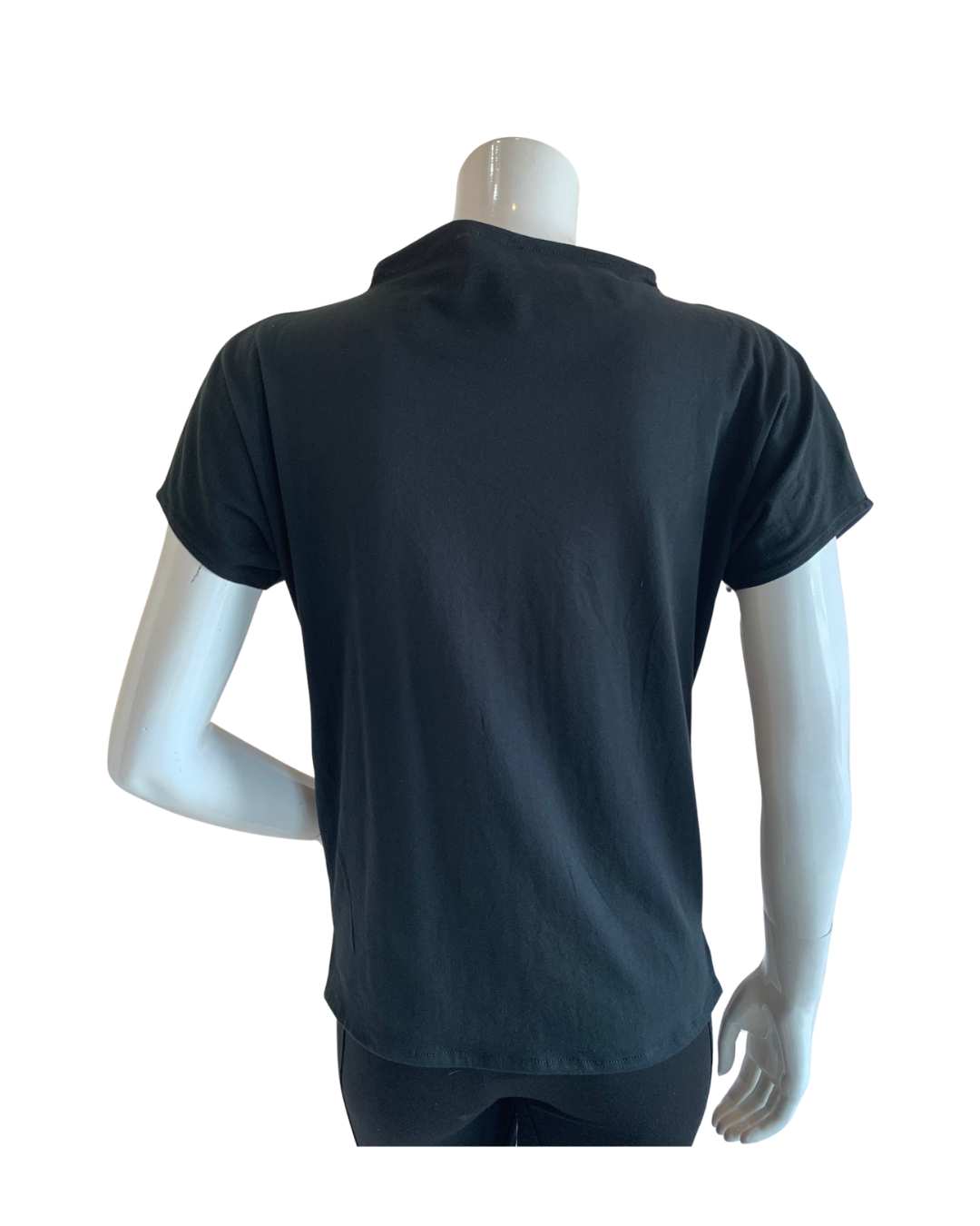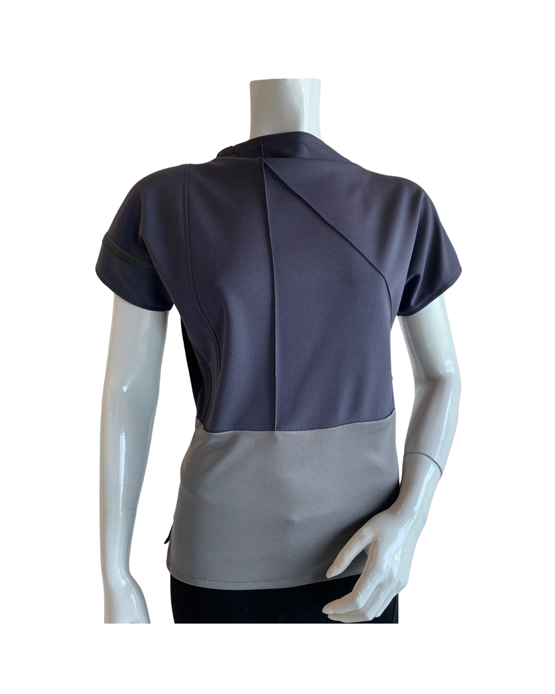 Contrast gray cap sleeve cotton poly tee with mock neck with zipper detail